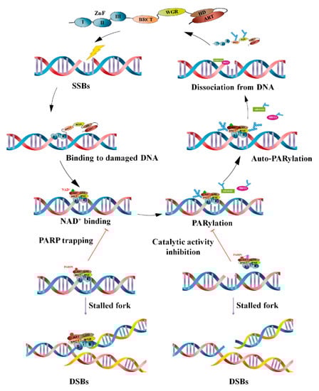 - Wei, H.; Yu, X. Functions of PARylation in DNA damage repair pathways. Genom. Proteom. Bioinform. 2016, 14, 131–139. [Google Scholar] [CrossRef] [PubMed]