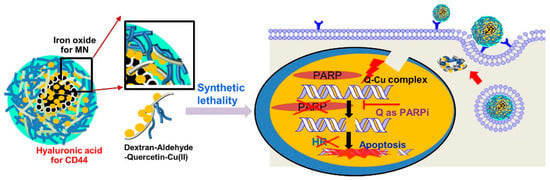 - Cheng, H.-W.; Chiang, C.-S.; Ho, H.-Y.; Chou, S.-H.; Lai, Y.-H.; Shyu, W.-C.; Chen, S.-Y. Dextran-modified Quercetin-Cu (II)/hyaluronic acid nanoMed. with natural poly (ADP-ribose) polymerase inhibitor and dual targeting for programmed synthetic lethal therapy in triple-negative breast cancer. J. Control. Release 2021, 329, 136–147. [Google Scholar] [CrossRef] [PubMed]