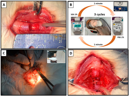 In this study, we applied our modified partial decellularization method [10]. Each tissue sample will be subjected to the ultrasonic decellularization process in both types of buffers, respectively, with 1% SDS under sonication for 1 min and then 1% PBS under sonication for 1 min as one cycle and repeated three times (3 cycles). The power of the sonication (Elma S 60 H) was set to 180 W. Then, all of the tracheal grafts were stored in an antibiotic solution.
