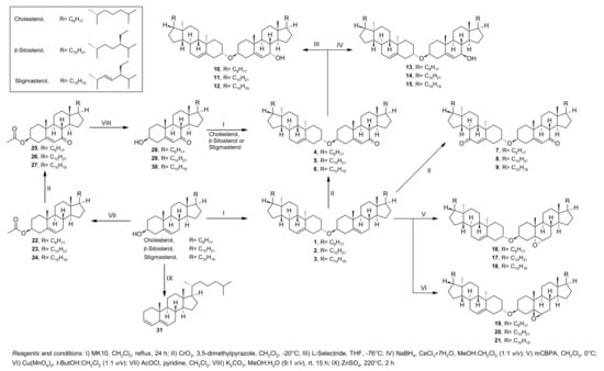 2.1. Synthesis of the Sterol Derivatives