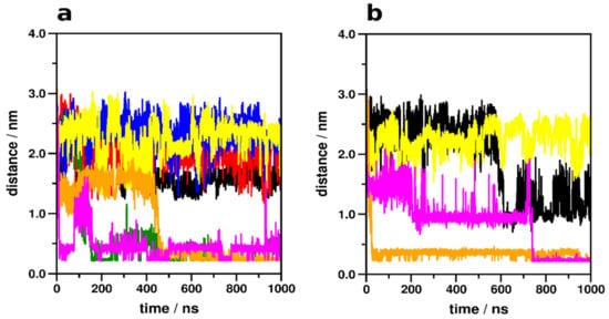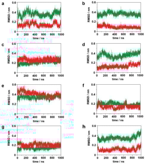 - Huang, J.; MacKerell, A.D., Jr. CHARMM36 all-atom additive protein force field: Validation based on comparison to NMR data. J. Comput. Chem. 2013, 34, 2135–2145. [Google Scholar] [CrossRef] [PubMed] [Green Version]