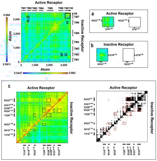 - Mitra, A.; Sarkar, A.; Szabó, M.; Borics, A. Correlated Motions of Conserved Polar Motifs Lay out a Plausible Mechanism of G Protein-Coupled Receptor Activation. Biomolecules 2021, 11, 670. [Google Scholar] [CrossRef]