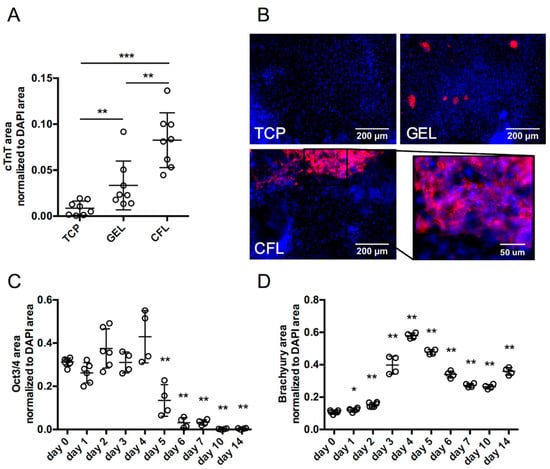 - Jung, J.P.; Hu, D.; Domian, I.J.; Ogle, B.M. An integrated statistical model for enhanced murine cardiomyocyte differentiation via optimized engagement of 3D extracellular matrices. Sci. Rep. 2015, 5, 18705. [Google Scholar] [CrossRef] [Green Version]