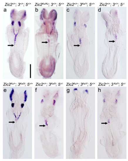 - Elms, P.; Siggers, P.; Napper, D.; Greenfield, A.; Arkell, R.M. Zic2 is required for neural crest formation and hindbrain patterning during mouse development. Dev. Biol. 2003, 264, 391–406. [Google Scholar] [CrossRef] [PubMed]