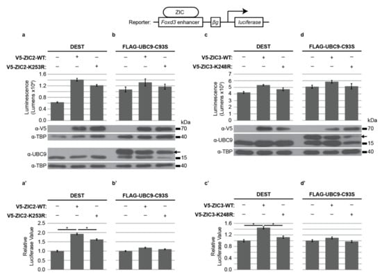 2.3. SUMOylation Promotes ZIC Trans-Activation of the Foxd3 Enhancer