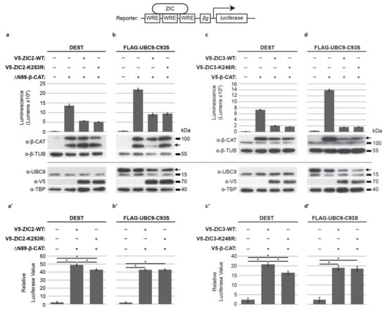 2.6. ZIC Protein SUMOylation Is Enhanced in a High-WNT Environment