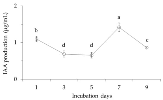 2.2.1. Indole-3-Acetic Acid (IAA) Production