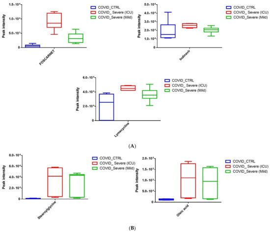 Firstly, we noticed that EVs from COVID-19 carry a variety of antivirals and antibiotics, such as Foscarnet, Indinavir, and lymecycline, that were almost absent in the control EVs. It is highly speculative that EVs are used to deliver these drugs to the target cells or organs, primarily to restrain COVID-19 pathogenesis. To the best of our knowledge, we are the first to report such findings related to exosomes in COVID-19 patients. This finding seems to be highly relevant as EVs are known to serve as natural carriers for small molecules, drugs, and vaccine candidates for therapy [46,47,48,49]. However, further research work will provide a clearer picture of the above-mentioned findings.