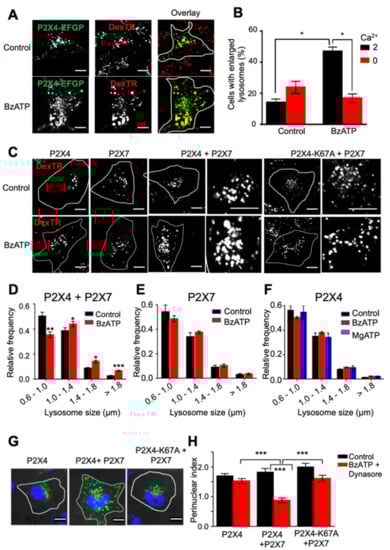 2.2. Activation of Plasma Membrane P2X7 Receptors Increases Lysosome Size in a P2X4 Receptor-Dependent Manner