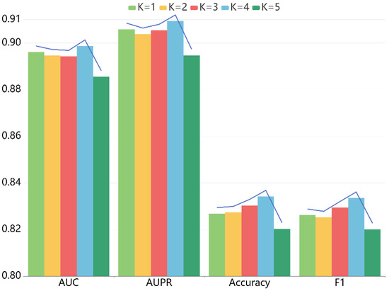 Effects of depth K on the performance of LRGCPND.