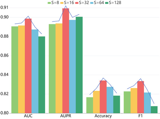 Prediction results of LRGCPND with different embedding size S.