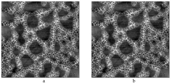 It should be noted that the results of earlier studies (the difference by several orders of magnitude in the values of surface area calculated using two different methods. i.e., computed from experimental sorbometry data and by processing atomic force microscopy images) revealed that there exists a system of micropores with sizes below 10 nm, which cannot be detected by atomic force microscopy. Thus, the conducting branches of macroporous objects are not solid, as a rule, this is a material with a hierarchical structure (Figure 6).