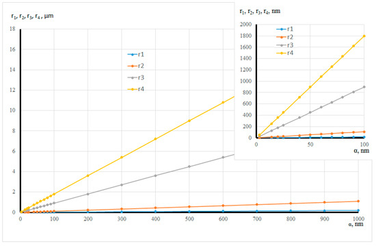 Figure 15 and Table 1 present the estimation of the radii of the four pore types versus the globule radius. The values show that a micro-mesoporous system is formed with the globule radius of 1 nm. Macropores are observed when the globule radius is 2.78 nm, and then a micro-meso-macroporous system is formed.