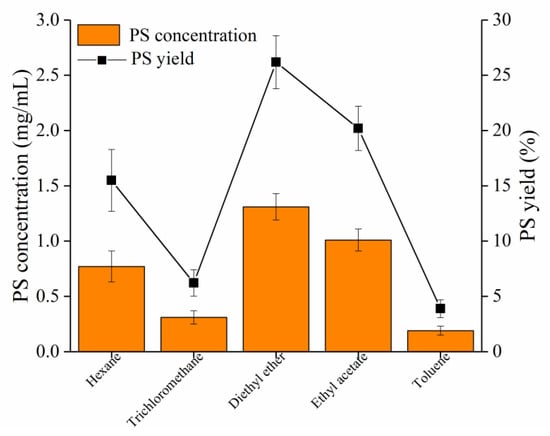 Application of SkPLD for PS synthesis. Effect of different organic solvents on the yield of PS. Values were means ± standard deviation from three independent experiments.