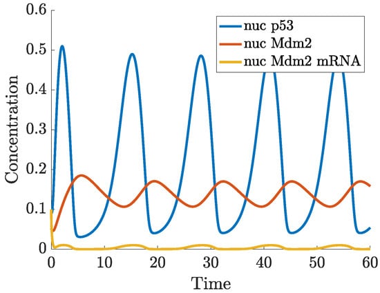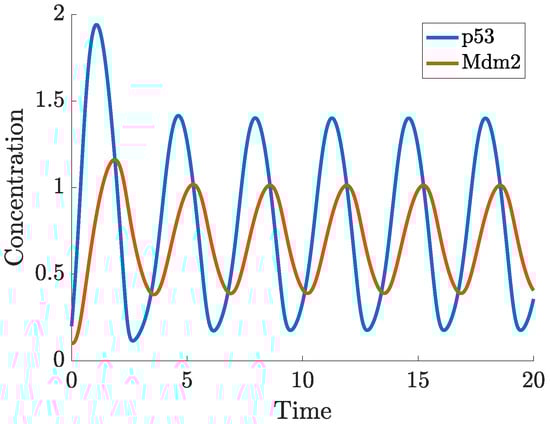 - Horhat, R.F.; Neamtu, M.; Mircea, G. Mathematical models and numerical simulations for the p53-Mdm2 network. Appl. Sci. 2008, 10, 94–106. [Google Scholar]