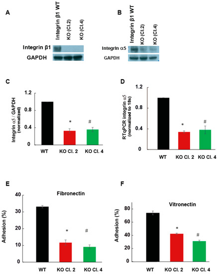 2.2. Adhesion of MIA PaCa-2 Cells to Vitronectin and Fibronectin Is Decreased by the Deletion of Integrin β1