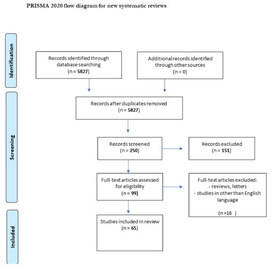 We performed a comprehensive literature search covering the period up to 31 July, 2021. First, we searched the MEDLINE/PubMed electronic database using the keywords: “tick-borne encephalitis” (n = 5827). Then, we used the keywords “chemokine AND tick-borne encephalitis” (n = 16), “metalloproteinase AND tick-borne encephalitis” (n = 9), “gene AND tick-borne encephalitis” (n = 123), and “marker AND tick-borne encephalitis virus” (n = 29). The next step involved limiting the search to studies written in English and the exclusion of duplicates. Thus, 58 publications were included in the study (Figure 1, PRISMA flow diagram modified from Page et al. [20]).