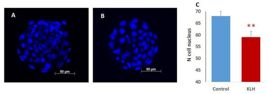 2.5. The Impact of Cross-Talk between Spermatozoa and Seminal Fluid of Immune Primed CD1 Male Mice on Embryo Development