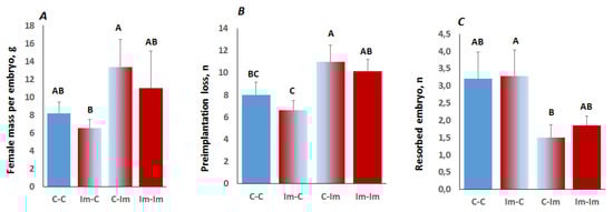 | Factors | Female Mass/Litter Size | Pre-Implantation Losses | Post-Implantation Losses (Resorption) | |||