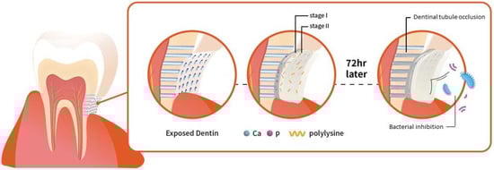 Dentin hypersensitivity (DH) is one of the common dental diseases in adults. DH is defined as short, sharp pain arising from response to stimuli typically thermal, evaporative, tactile, osmotic, or chemical and which cannot be ascribed to any other form of dental defect or pathology []. The prevalence of dentin hypersensitivity ranges from 2.8% to 74%. The most accepted theory on DH, hydrodynamic theory states that stimuli applied to dentin tubules result in movement of dentinal fluid, which then stimulates nervous processes in the more pulpal areas of the dentin and/or nerves in the dental pulp itself, resulting in pain impulse transmission. Reducing the functional radius of the tubule by partially occluding the tubule orifice should greatly reduce fluid flow and, therefore, dentin sensitivity. Agents such as strontium, oxalates, sodium fluoride, calcium carbonate, bioactive glass nanoparticles, and laser are reportedly effective in occluding dentin tubules. These materials form precipitates on dentin surface which occlude dentinal tubules; however, the crystals dissolve in saliva which subsequently undermines the efficiency of those treatments [].