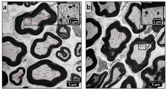 Animals were anesthetized with an overdose of isoflurane (Forane, Abbott Hungary, Budapest, Hungary) on week 8. Rats were transcardially perfused with 25 mL of phosphate-buffered saline (PBS), followed by 300 mL of 4% paraformaldehyde solution in Millonig buffer for 20 min. The brain and spinal cord were dissected and then placed into the same fixative solution for post-fixation for 72 h at 4 °C. The sciatic nerve was also removed from all animals and further processed for electron microscopy.