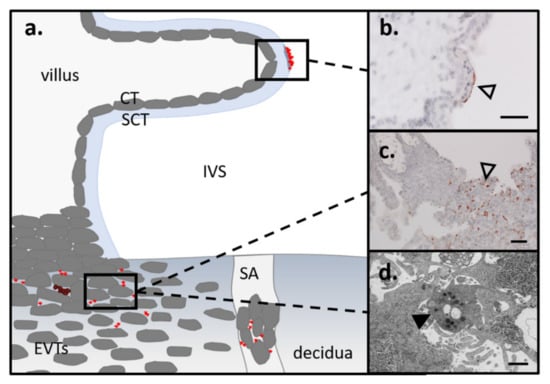 - Benirschke, K.; Burton, G.J.; Baergen, R.N. Pathology of the Human Placenta, 4th ed.; Springer: New York, NY, USA, 2000; ISBN 978-1-4757-4199-5. [Google Scholar]