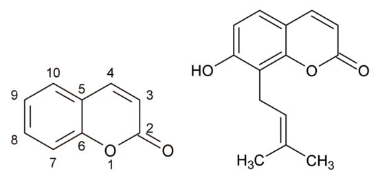 - De Souza, S.M.; Delle Monache, F.; Smânia, A., Jr. Antibacterial activity of coumarins. Z. Naturforsch. C J. Biosci. 2005, 60, 693–700. [Google Scholar] [CrossRef]