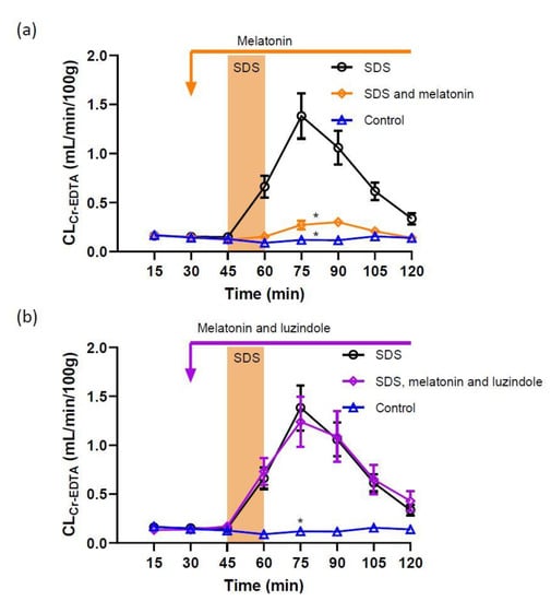 Peters K, Dahlgren D, Lennernäs H, Sjöblom M. Melatonin-Activated Receptor Signaling Pathways Mediate Protective Effects on Surfactant-Induced Increase in Jejunal Mucosal Permeability in Rats. International Journal of Molecular Sciences. 2021; 22(19):10762. https://doi.org/10.3390/ijms221910762