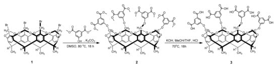 4.1. Synthesis of Tetrakis(3,5-dicarboxylatophenoxy)-cavitand (TDC, 3)