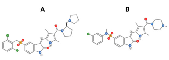 Chemical structure of PHA665752 (A) and SU11274 (B) compounds.