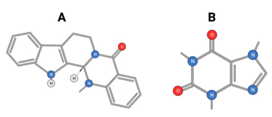 Additionally, evodiamine was shown to induce the apoptosis of HCC through downregulating HIF-1α under hypoxia [133]. It was also reported to inhibit proliferation and promote apoptosis of HCC cells via the Hippo-Yes-Associated Protein signaling pathway [134]. Likewise, coffee is a very common and widely consumed beverage worldwide. Bioactive molecules in coffee include caffeine, diterpenes, and chlorogenic acid. Coffee has been shown to display anti-fibrotic, anti-neoplastic, anti-inflammatory, and antioxidant effects [135]. It was reported to display a preventive role against the recurrence of HCC after orthotopic liver transplants. Postoperative coffee intake was also found to result in improved overall survival. The anti-HCC effect of caffeine (Figure 13B) was suggested to be mediated by an antagonistic effect on adenosine A2AR-mediated growth of HCC cells. Many natural compounds were described to display anti-HCC activity. S-allylmercaptocysteine derived from garlic has strong hepatoprotective activity. It was shown to exert an anti-HCC effect through the deactivation of MAPK- TGF-β interaction and apoptosis induction in HepG2 cells [136]. This compound was also described to act through an interaction with the cell membrane Wnt-pathway co-receptor [137]. Some alkaloids such as crocin and capsaicin were extensively studied as promising anti-HCC molecules.