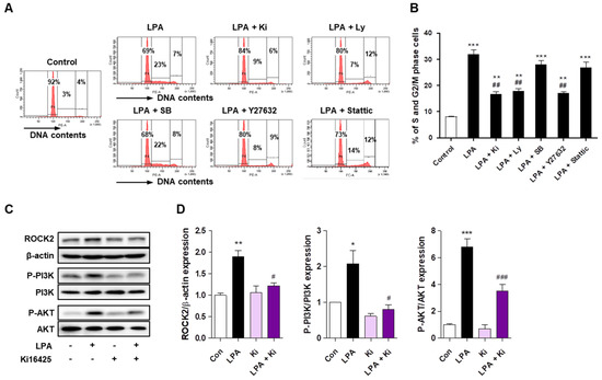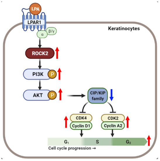 2.6. LPA Promotes Cell Cycle Progression through ROCK2 and PI3K/AKT Signaling in HaCaT Cells