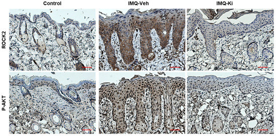 2.7. Ki16425 Decreases the Epidermal Expression of ROCK2 and p-AKT in IMQ-Induced Psoriasis-like Mice