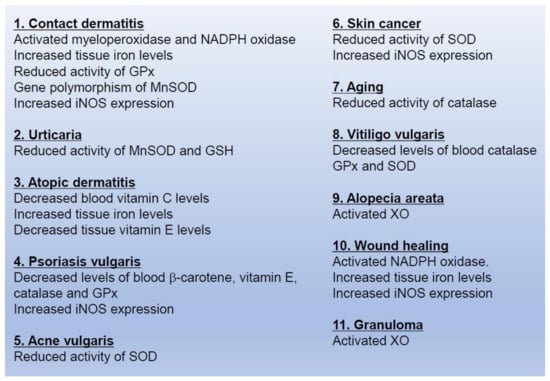 Nakai, K.; Tsuruta, D. What Are Reactive Oxygen Species, Free Radicals, and Oxidative Stress in Skin Diseases? Int. J. Mol. Sci. 2021, 22, 10799. https://doi.org/10.3390/ijms221910799