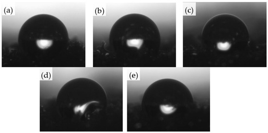 Images of the contact angles measured for (a) PU_0, (b) PU_V, (c) PU-VC, (d) PU-VCH, and (e) PU_VPP.