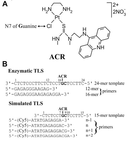 Hreusova, M.; Brabec, V.; Novakova, O. Processing and Bypass of a Site-Specific DNA Adduct of the Cytotoxic Platinum–Acridinylthiourea Conjugate by Polymerases Involved in DNA Repair: Biochemical and Thermodynamic Aspects. Int. J. Mol. Sci. 2021, 22, 10838. https://doi.org/10.3390/ijms221910838