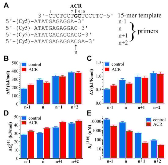- Minetti, C.; Remeta, D.P.; Miller, H.; Gelfand, C.A.; Plum, G.E.; Grollman, A.P.; Breslauer, K.J. The thermodynamics of template-directed DNA synthesis: Base insertion and extension enthalpies. Proc. Natl. Acad. Sci. USA 2003, 100, 14719–14724. [Google Scholar] [CrossRef]