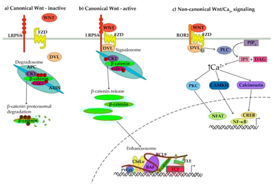 - Veeman, M.T.; Axelrod, J.D.; Moon, R.T. A Second Canon. Functions and Mechanisms of Beta-Catenin-Independent Wnt Signaling. Dev. Cell 2003, 5, 367–377. [Google Scholar] [CrossRef] [Green Version]