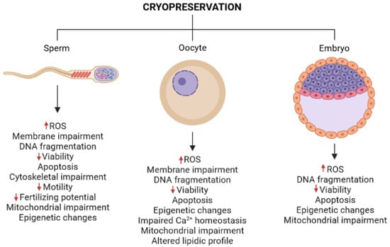 Estudillo E, Jiménez A, Bustamante-Nieves PE, Palacios-Reyes C, Velasco I, López-Ornelas A. Cryopreservation of Gametes and Embryos and Their Molecular Changes. International Journal of Molecular Sciences. 2021; 22(19):10864. https://doi.org/10.3390/ijms221910864