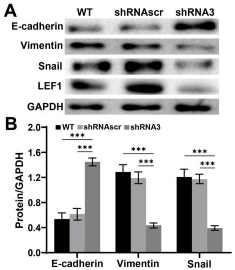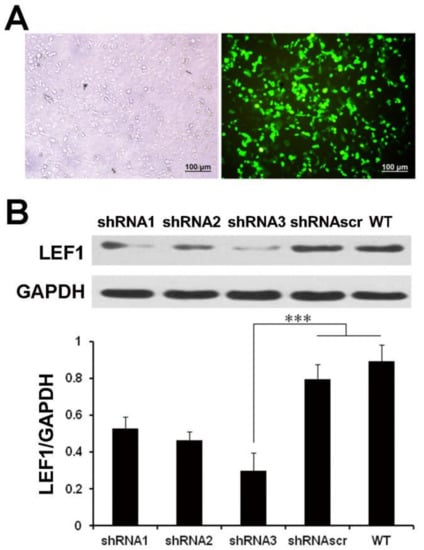 2.2. LEF1 Expression Was Efficiently Inhibited by Synthesized shRNA in Caco2 Cells