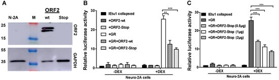 2.1. ORF2 Sequences Reduce GR+DEX-Mediated Transactivation