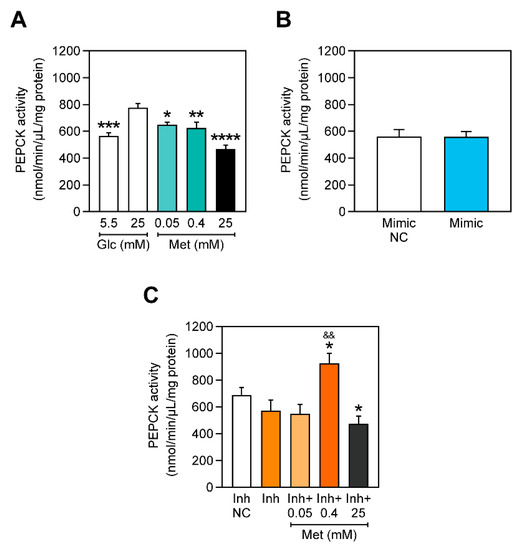 2.4. PEPCK Activity Is Decreased with Increasing Concentrations of Metformin and miR-378a-3p Silencing