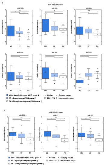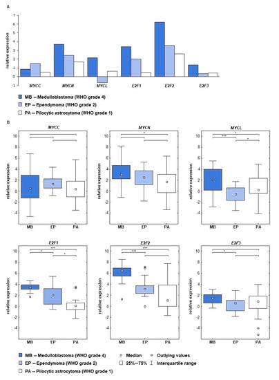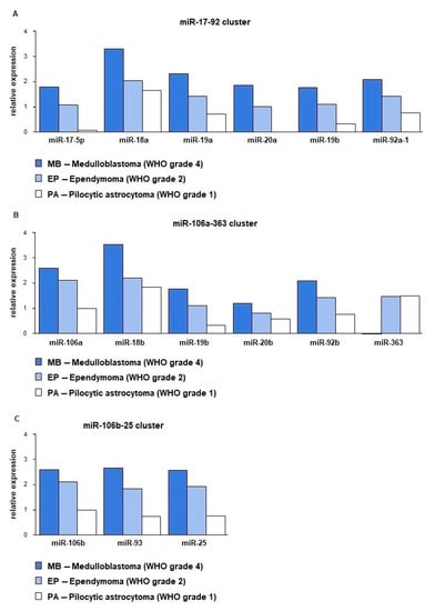 Gruszka, R.; Zakrzewski, K.; Liberski, P.P.; Zakrzewska, M. mRNA and miRNA Expression Analyses of the MYC/E2F/miR-17-92 Network in the Most Common Pediatric Brain Tumors. Int. J. Mol. Sci. 2021, 22, 543. https://doi.org/10.3390/ijms22020543