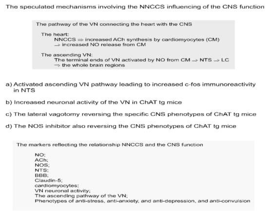 Despite the limitations of transgenic mice, the finding that the heart equipped with NNCCS influences higher levels of brain functions (e.g., mood and BBB) through the VN afferent pathway, may provide a novel concept to modulate the brain by the heart, not the brain–heart connection but heart–brain connection.