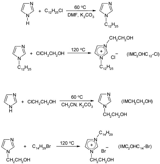 Long-chain imidazolium ILs comprising polar 2-hydroxyethyl groups were synthesized according to Scheme 3.