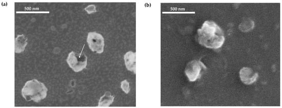 The size and ζ-potential were measured by dynamic light scattering using a Zetasizer Nano model ZEN3600 (Malvern Panalytical, Malvern, UK). All measurements were performed in triplicate. Three different batches of each system were evaluated. For the size measurements, the samples were diluted 20-fold with distilled water and, for ζ-potential, 10 mM of sodium chloride solution was used at the same dilution. High resolution scanning electron microscopy images were acquired using an Extra-High Resolution Scanning Electron Microscope Magellan 400L (Thermo Fisher Scientific, Waltham, MA, USA, former FEI), equipped with a tunable diode laser (TLD) detector. The 10 µL samples were diluted 20-fold with water, as above, and placed on copper grid support films, formvar/carbon, 400 mesh, Cu (Ted Pella, Inc., Redding, CA, USA). The images were scanned at 5 kV acceleration voltages.