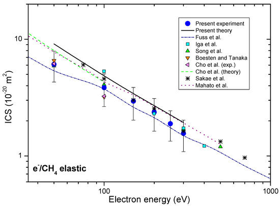 - Sohn, W.; Kochem, K.-H.; Scheuerlein, K.-M.; Jung, K.; Ehrhardt, H. Elastic electron scattering from CH4 for collision energies between 0.2 and 5 eV. J. Phys. B 1986, 19, 3625–3632. [Google Scholar] [CrossRef]