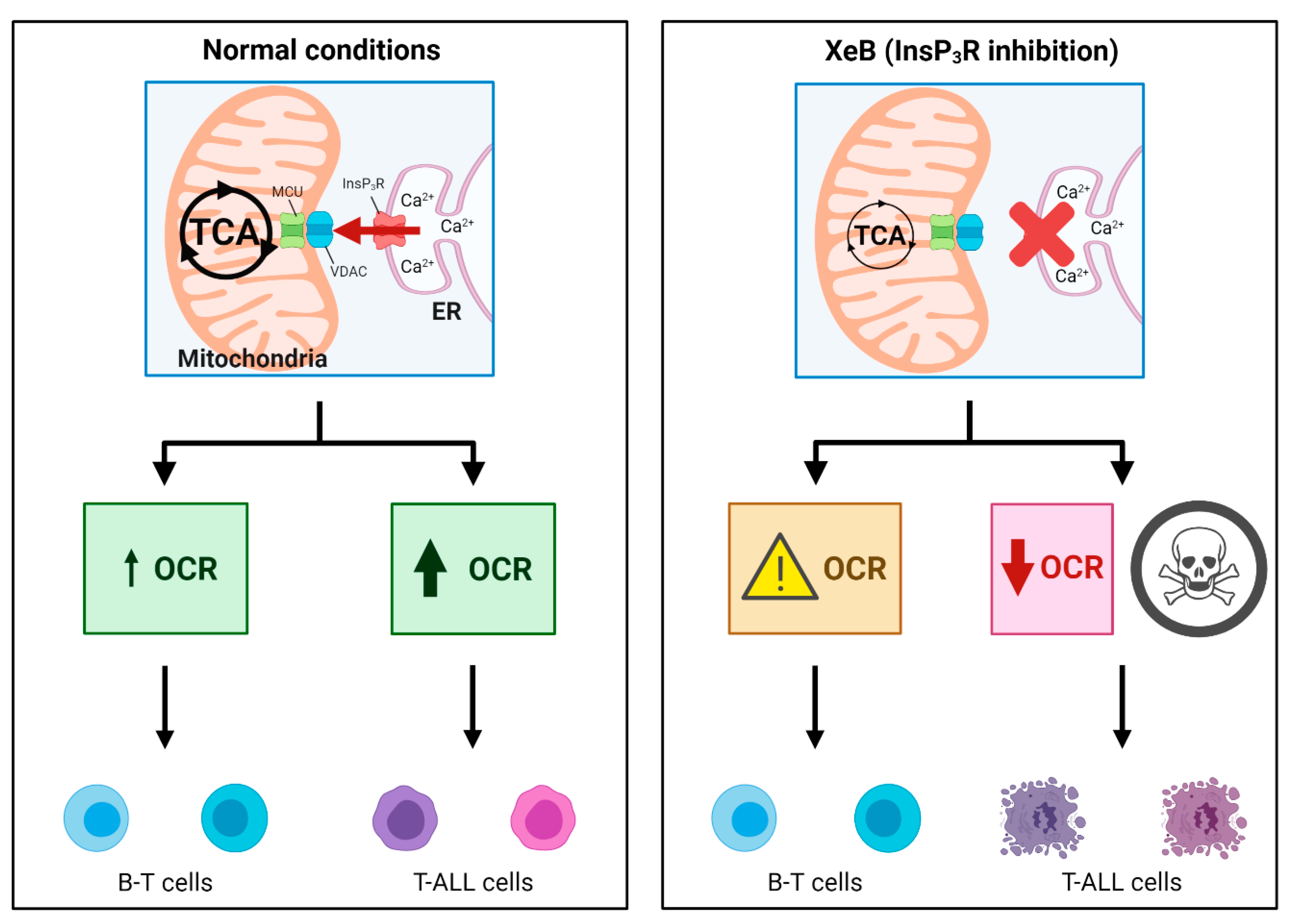 Cruz, P.; Ahumada-Castro, U.; Bustos, G.; Molgó, J.; Sauma, D.; Lovy, A.; Cárdenas, C. Inhibition of InsP3R with Xestospongin B Reduces Mitochondrial Respiration and Induces Selective Cell Death in T Cell Acute Lymphoblastic Leukemia Cells. Int. J. Mol. Sci. 2021, 22, 651. https://doi.org/10.3390/ijms22020651