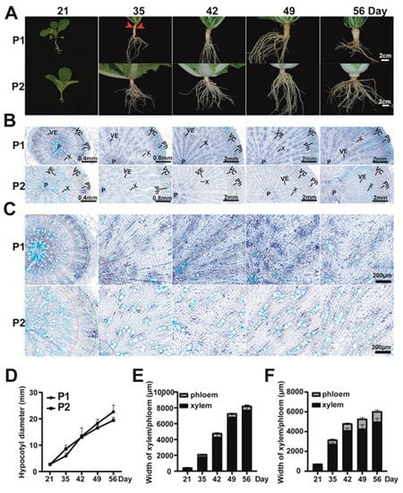 2.2. Phenotypic and Anatomical Observation of the Hypocotyl and Root from Parents