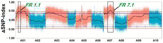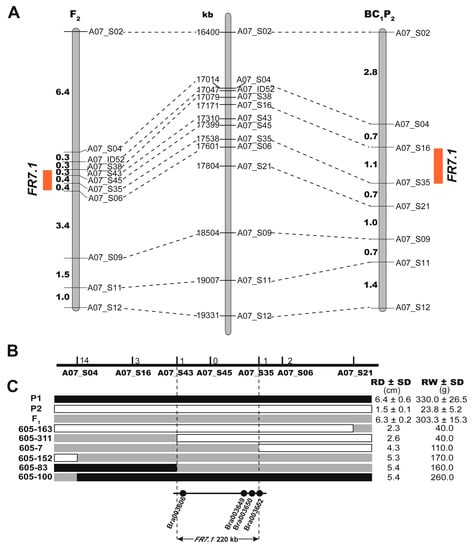 2.4. Confirmation and Fine-Mapping of the Two QTLs: FR1.1 and FR7.1